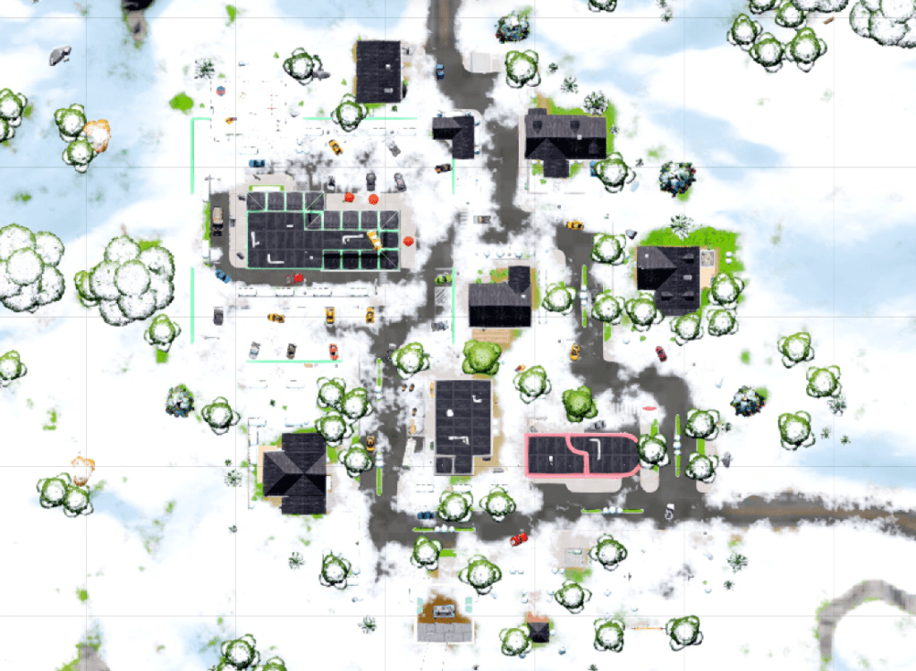 Este pequeno posto de gasolina no centro do mapa oferece aos jogadores tudo de que precisam para vencer as partidas. Você tem acesso a báus, geradores de itens, e caixas NOM suficientes para sair daí com os bolsos cheios. O outro bônus adicionado é o metal. Nem todos os locais têm metal suficiente para abastecer um jogador. Você pode contar com este posto central para fazer isso.