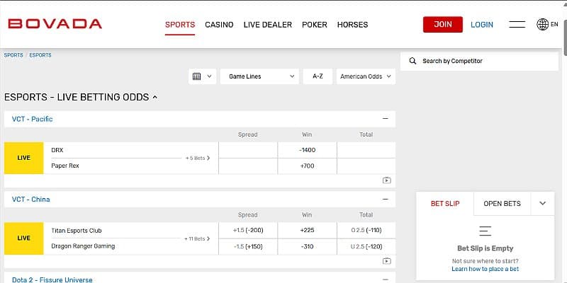 You know when a site takes video games seriously when they have a dedicated section just for esports bets, and BetOnline is no exception. It feels like esports is a true priority here, rather than just an offshoot of the regular sportsbook.