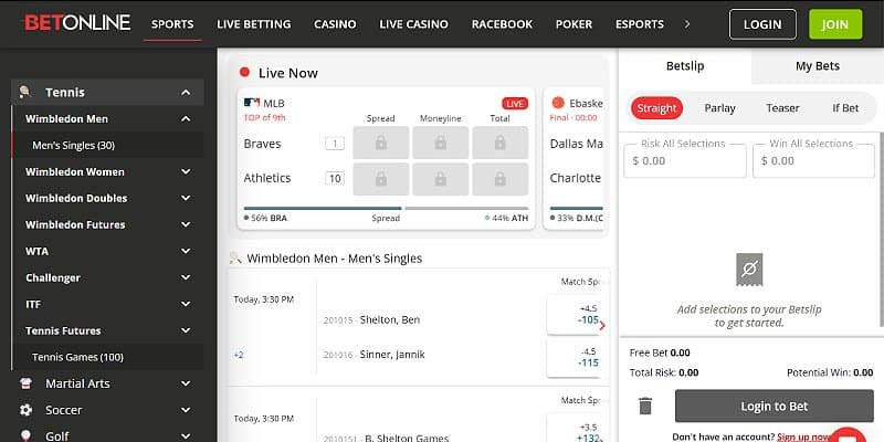 BetOnline makes your tennis betting experience a dream, from initial sign-up to the moment you place your bets. A forward-thinking bet slip lets you turn your wagers into teasers and if bets at the click of a button, while a re-bet function lets you place the same bet twice if you’ve reached the maximum stake.