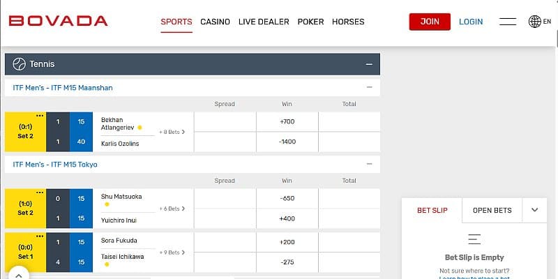 Bovada offers an array of props betting opportunities so that you can dive into markets like first set winner, total number of aces, as well as whether or not a player will win a set.