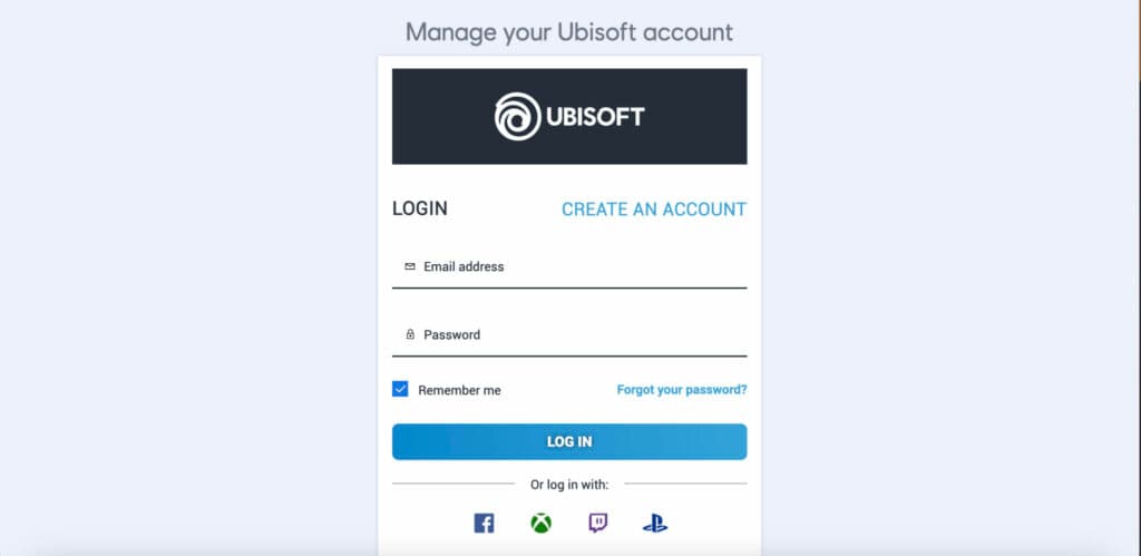 Not only can you log in with an Ubisoft account, but you can also use your Facebook, Xbox, PlayStation or Twitch account to log in.