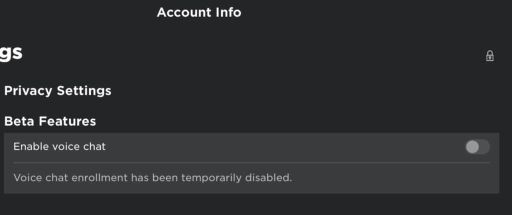- If you wish to disable voice chat at any time, simply return to the Privacy tab and toggle the selector off.