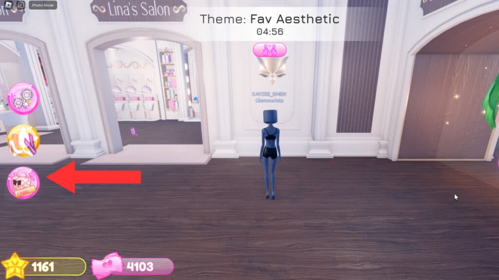 Step 1: Open Dress to Impress and locate the icon in the bottom left corner of your screen. The icon shows an image of a handbag and a coupon that reads "CODES".