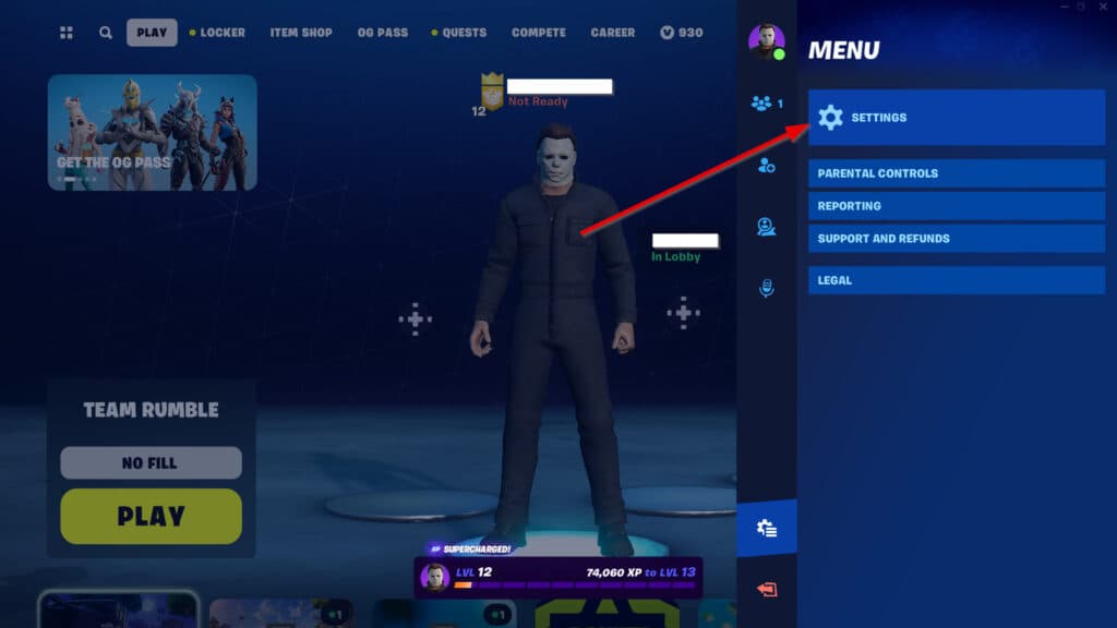 - Navigate to the 'Settings' menu in Fortnite.