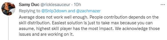Snip3down's tweet described how he was constantly getting matched up against cheaters and pred players while playing with his wife or other lesser skilled players in his squad. Samy Duc (@ricklesauseur) Technical Director for Apex Legends responded to his tweet with an explanation of the matchmaking system and potential plans to fix it.