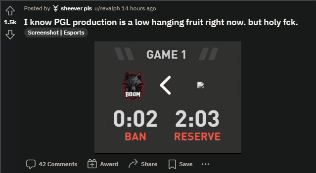 The broadcasts experienced in-game lags, frame drops, audio issues, and many more obnoxious errors. During the start of the day, random footage appeared on stream. PGL's Twitch extension, which serves to portray in-game info, also displayed wrong or outdated information.