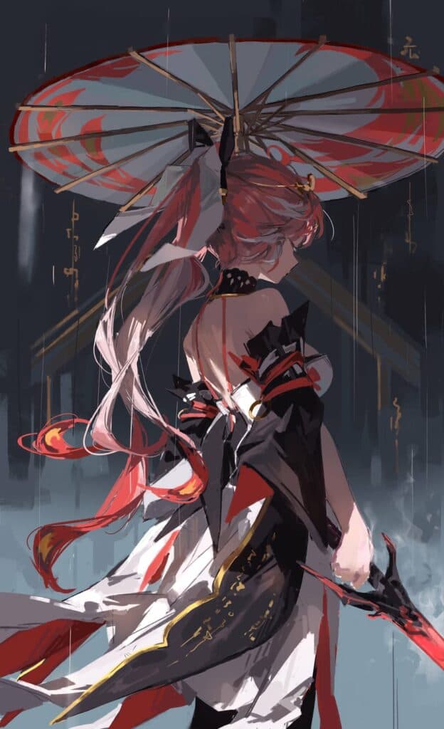 Changli looks solemn in this rainy artwork by loong.