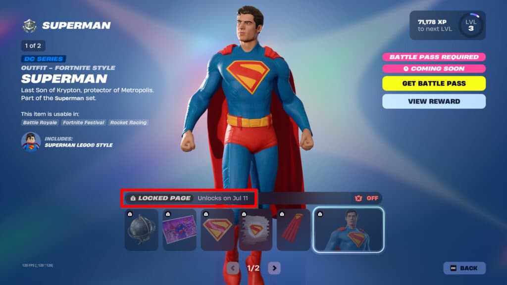 Here is a look at the two Superman Battle Pass pages and what rewards will be available on Friday the 11th: