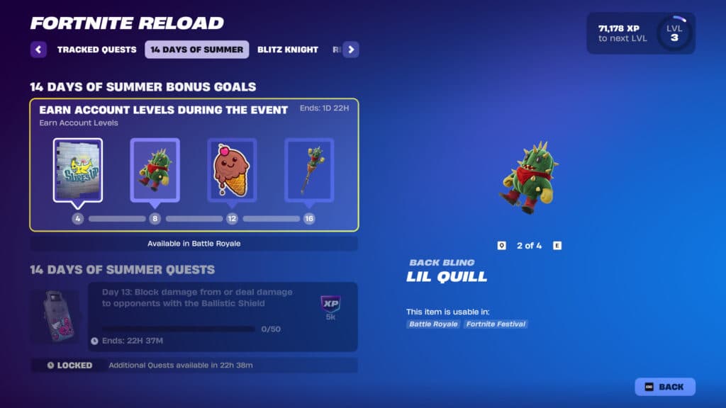 After earning 16 account levels, you will receive the Lil Quill Back Bling, which is the final of the four. Time is ticking, so you'd better act fast before July 7 comes and goes.