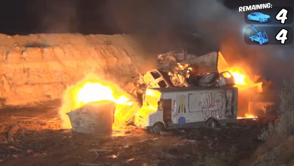 The next phase involves dropping flaming cars filled with gasoline. Blake adapts his defense to deflect the cars and protect the money from the ensuing fire. He employs various strategies, including repositioning shipping containers and using a water truck to douse potential flames. It was a wise strategy but as usual MrBeast had a twist ready to throw off his plan.