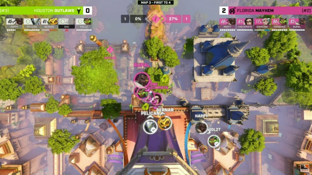 Checkmate would swap to Tracer in lieu to Florida taking control of the bot and gaining control once more. A support-focused EMP from Houston on the high ground caught the Mayhem off-guard and led to yet another swap with two meters of lead.