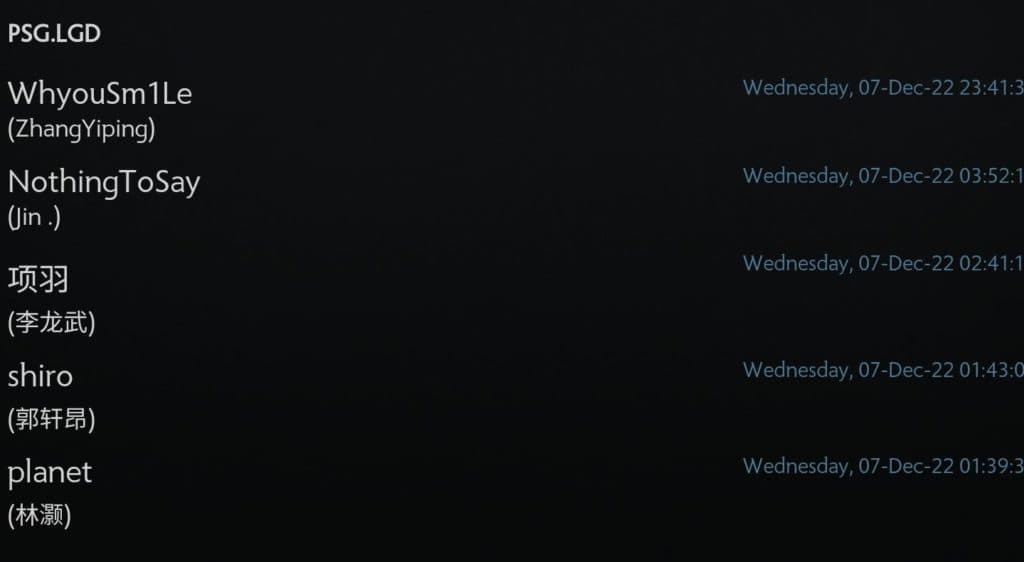 PSG.LGD is left with two: NothingToSay and y'.