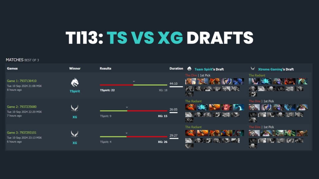 Spirit allowed the Sniper one more time and picked their signature Terrorblade. However, the pick didn't work at all. It was another game with not many kills, but every teamfight XG forced, Illya "Yatoro" Mulyarchuk was severely punished.